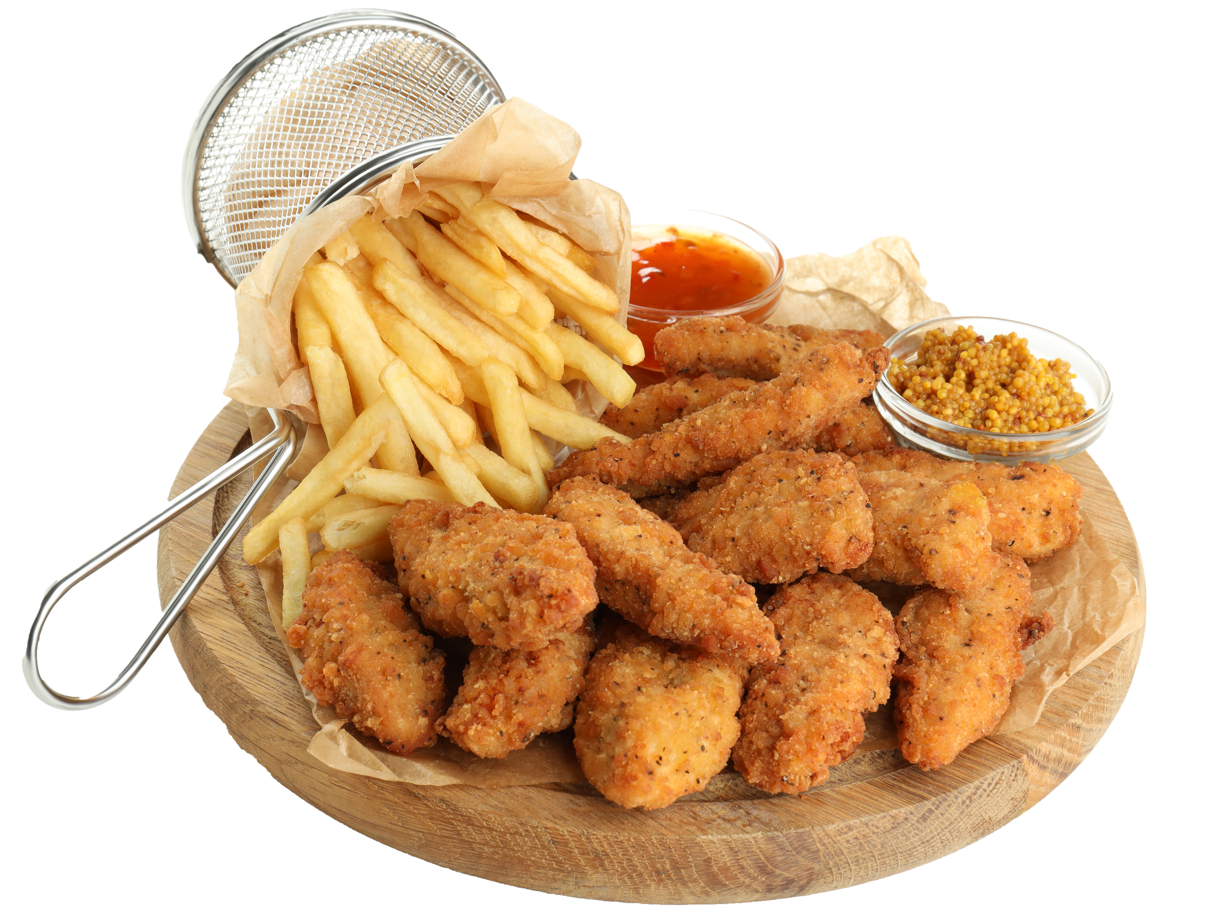 توپ مرغ سرخ شده، سیب زمینی سرخ کرده